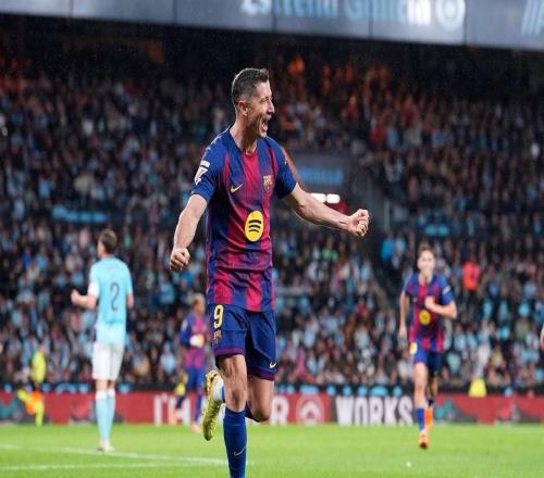 西甲第12轮,巴塞罗那客场对阵塞尔塔,莱万上演帽子戏法,这位37岁的巴萨前锋成为西甲历史上单场打入至少3球第四...