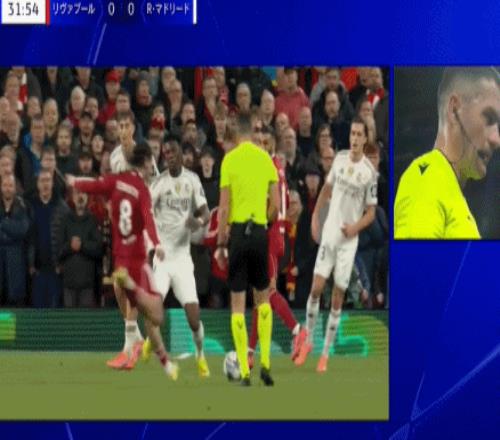 第32分钟,索博斯洛伊禁区外劲射,击中楚阿梅尼的手,利物浦众将索要点球,但裁判观看VAR之后认为是球打手,并未判罚点球。