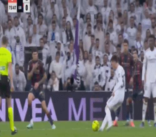 第42分钟,卡马文加后场无厘头停球失误,随后又犯规送出定位球,巴勃罗-马丁内斯操刀主罚,打穿皇马的人墙,直奔球门右上角而去,再度偏出立柱,皇马逃过一劫。