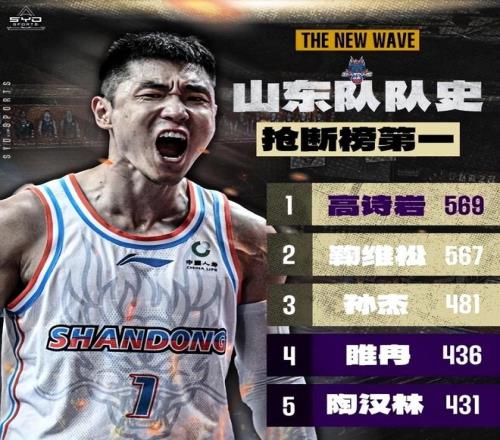 山东男篮在和新疆男篮的比赛中取得了一场20分的大胜,球队的状态有了明显提升。在这场比赛中,高诗岩的表现也非常出色,在出战29分钟半时间里9投7中,高效得到了18分9助攻3抢断的数据。也正是因为这三次抢断,让高诗岩职业生涯的总抢断数达到了569次,超越了山东男篮名宿鞠维松,成为了山东男篮的队史抢断王。高诗岩转发了自己成为队史抢断王的图片,并发声表示会一步一个脚印,帮助山东男篮走得更远。